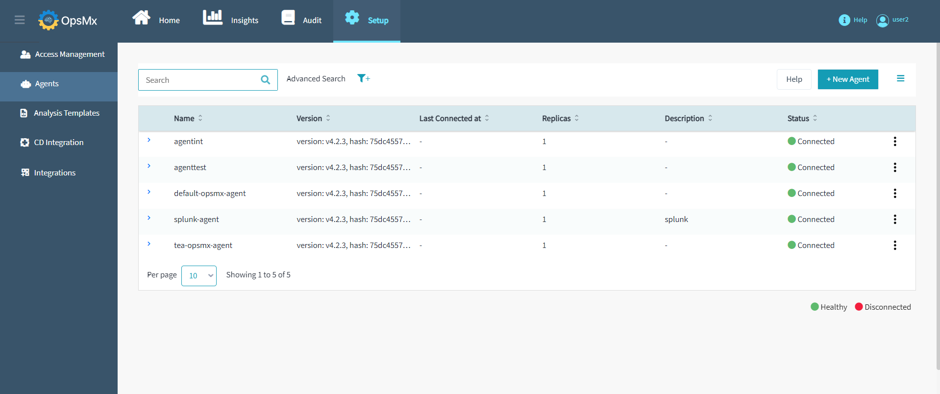 To view the Agents dashboard page, Click **Setup** from the application dashboard and the **Agents** tab on the left. The Agents page dashboard appears as shown below: