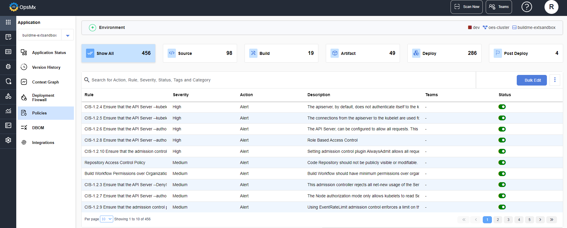 * [**Policies and Rules**](#policies-and-rules) - Explains the rules created for the applications security, by evaluating the data and helps in either blocking the deployment or notifying an alert to the user.&#x20;