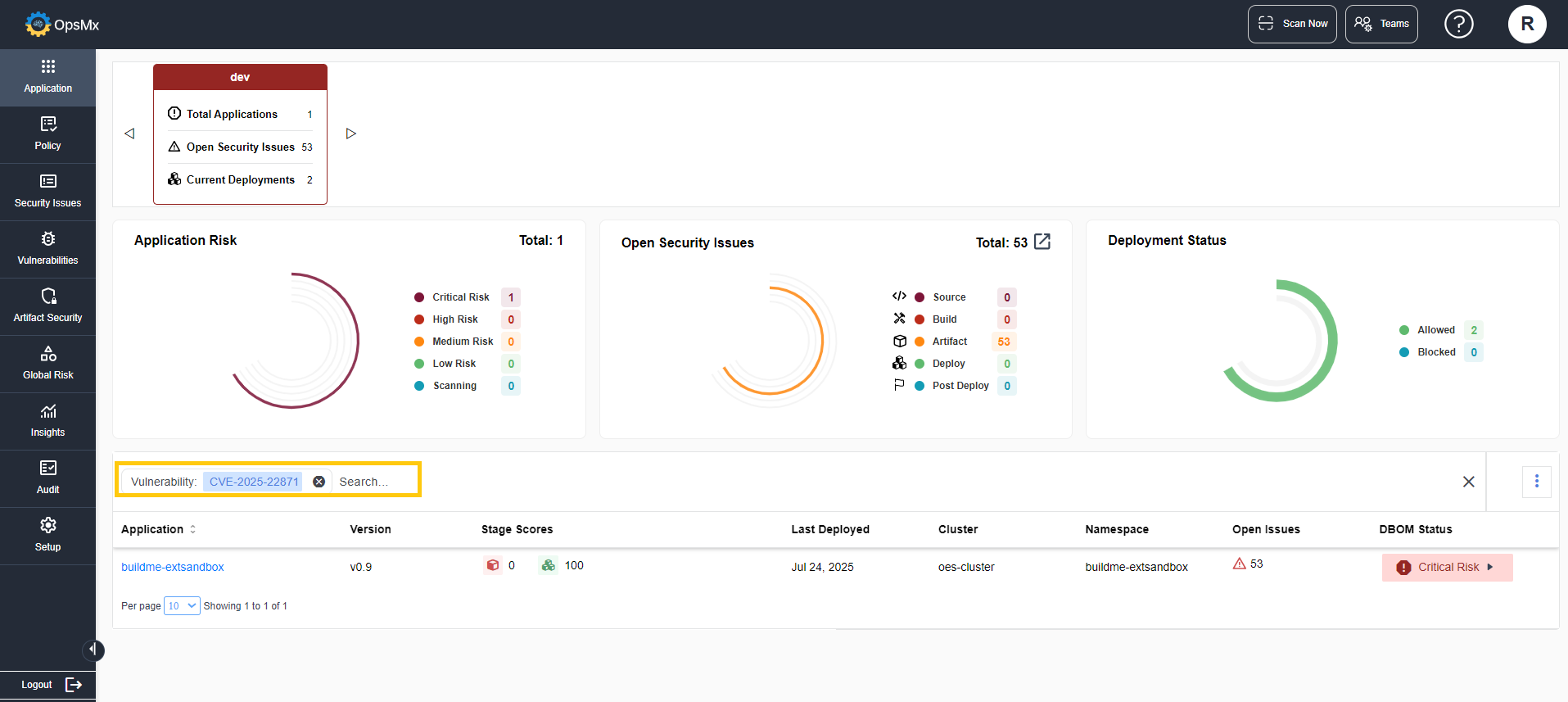 For detailed information on the application details, refer [Application Security Posture](https://docs.opsmx.com/opsmx-secure-software-delivery-ssd-platform/user-guide/view-security-posture/application-security-posture).&#x20;
