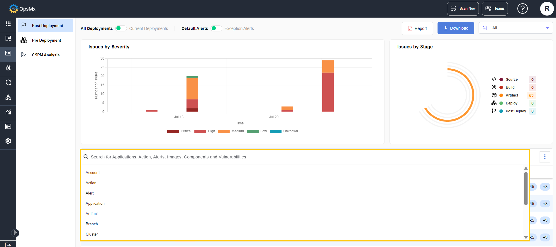 3. Breakdown of where Security Issues are detected (source, build, artifact and deploy stages)