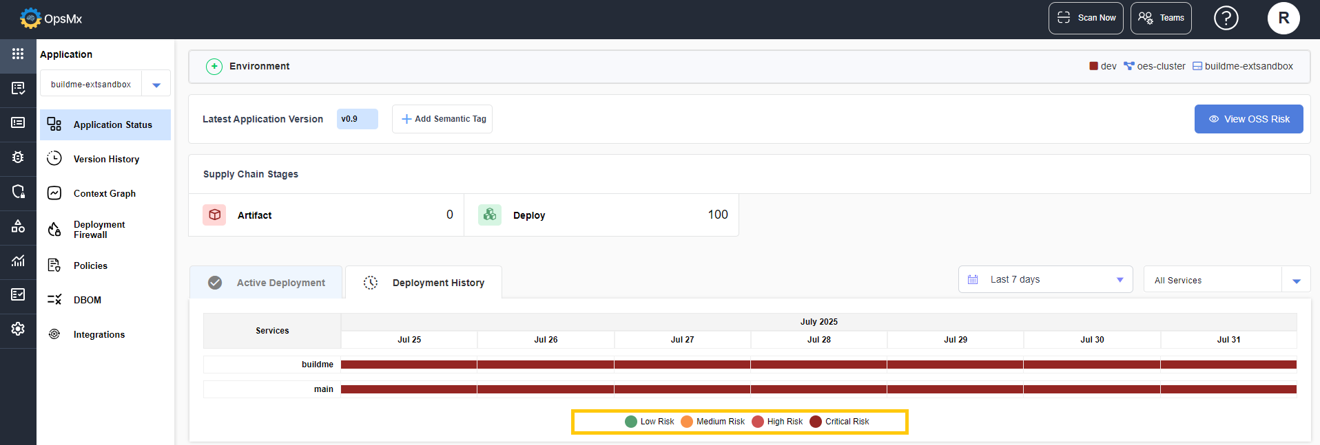 * Navigate to **Application Status** > **Deployment History**.