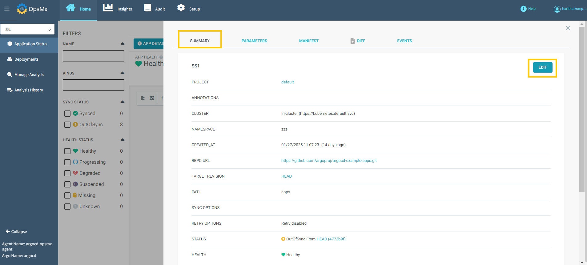 1. After login into the Argo CD applications Dashboard, click on the desired application you want to edit.